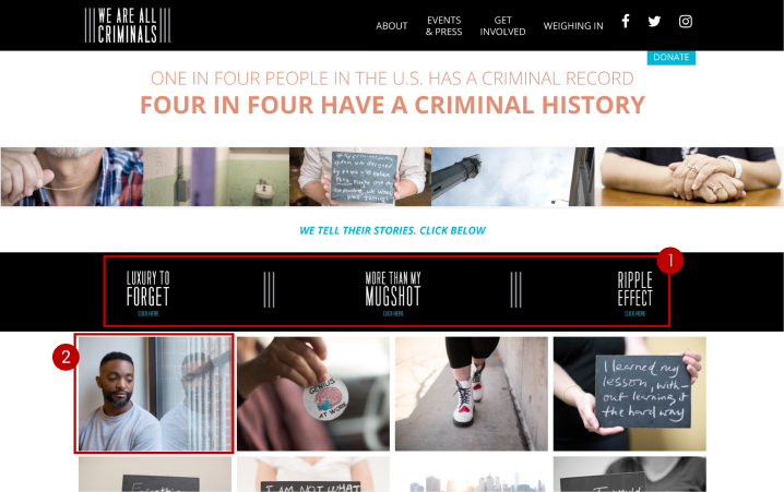 We Are All Criminals is a 501(c) non-profit organization dedicated to changing society’s perception of what it means to be a “criminal.” By sharing stories from those accused, convicted or directly affected by the criminal justice system, the aim is to erase the barriers that separate us. One in four people has a criminal record, but four out of four people have criminal histories, and those most affected were either caught or didn't have the resources to mount a defense.