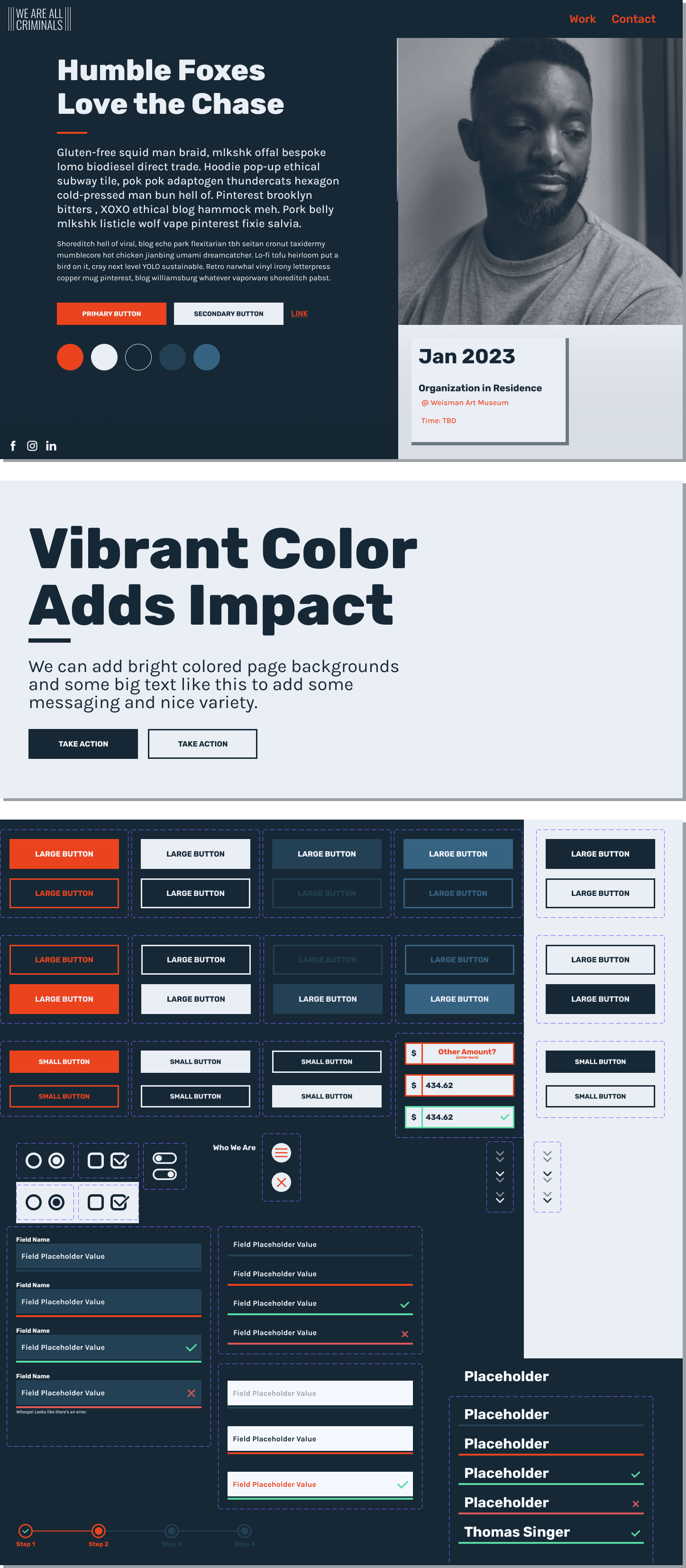 We presented our work, including the high fidelity prototype to our stakeholder, who absolutely loved it. We were asked to take our concept and create a Wordpress-theme based on the prototype. This was a validation of our progress with this design, and everybody is committed to making it a reality for We Are All Criminals. Moving forward we’ll focus on testing and starting front-end development process to make the site fully functional.
